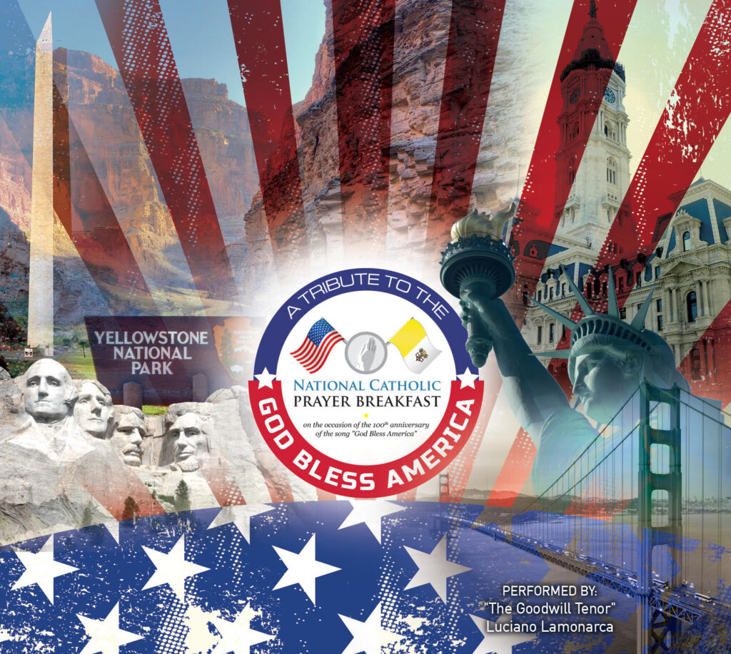 On May 23, 2018, on the occasion of the 100th anniversary of Irving Berlin’s composition of the song “God Bless America,” the National Catholic Prayer Breakfast, an annual initiative established in Washington D.C. since 2004, and that features prominent Catholic leaders, launched an initiative to commemorate the occasion, by offering a recorded version of the famous song free of charge in MP3 format. The song was recorded by tenor Luciano the Monarch.